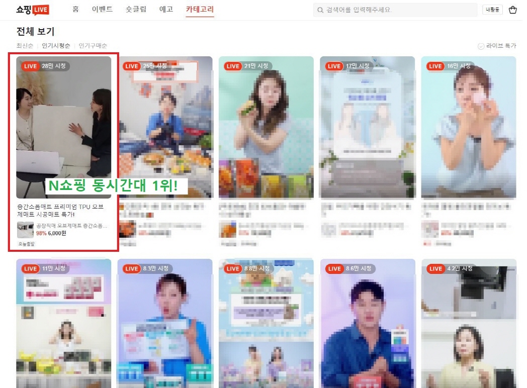 N 네이버 쇼핑 Live 동시간대 1위 !