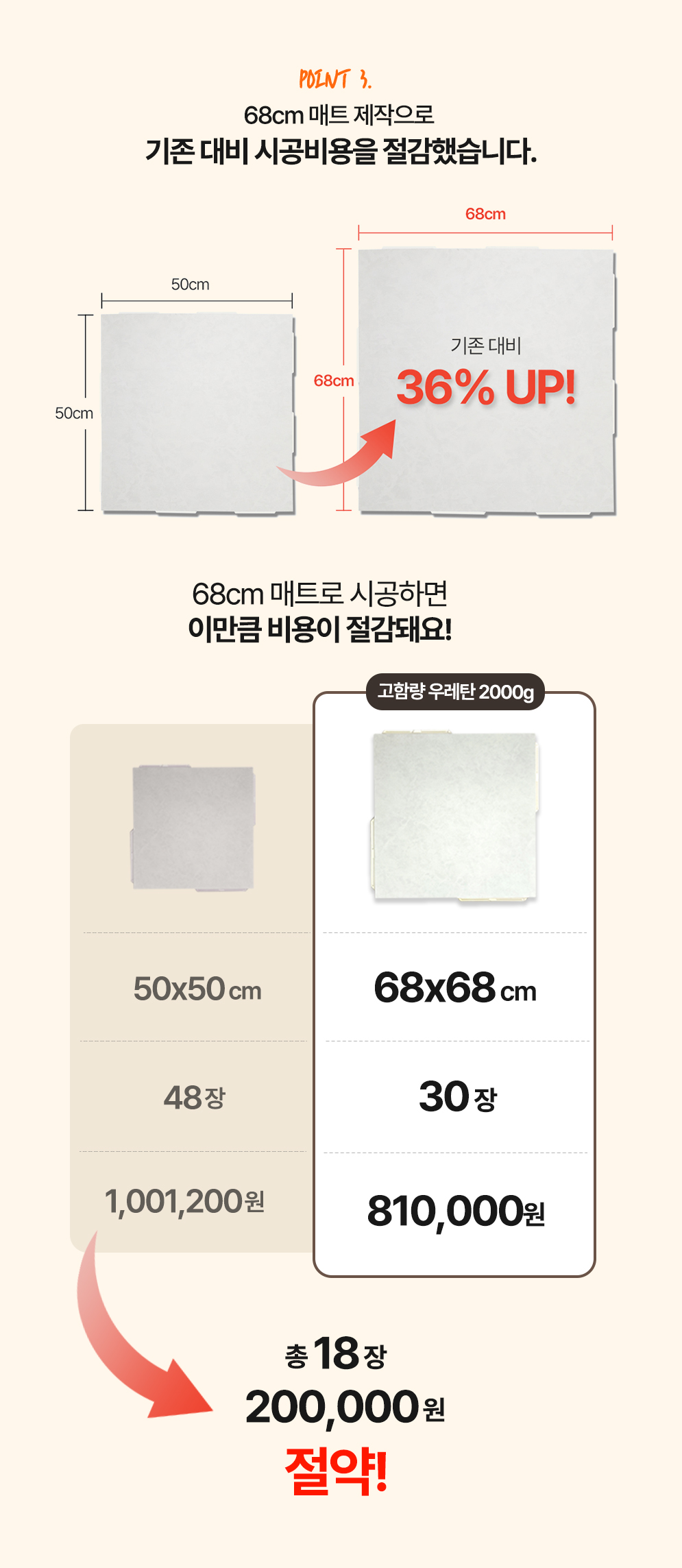 우레탄함량을 2000g 매트에 가득 채움으로써