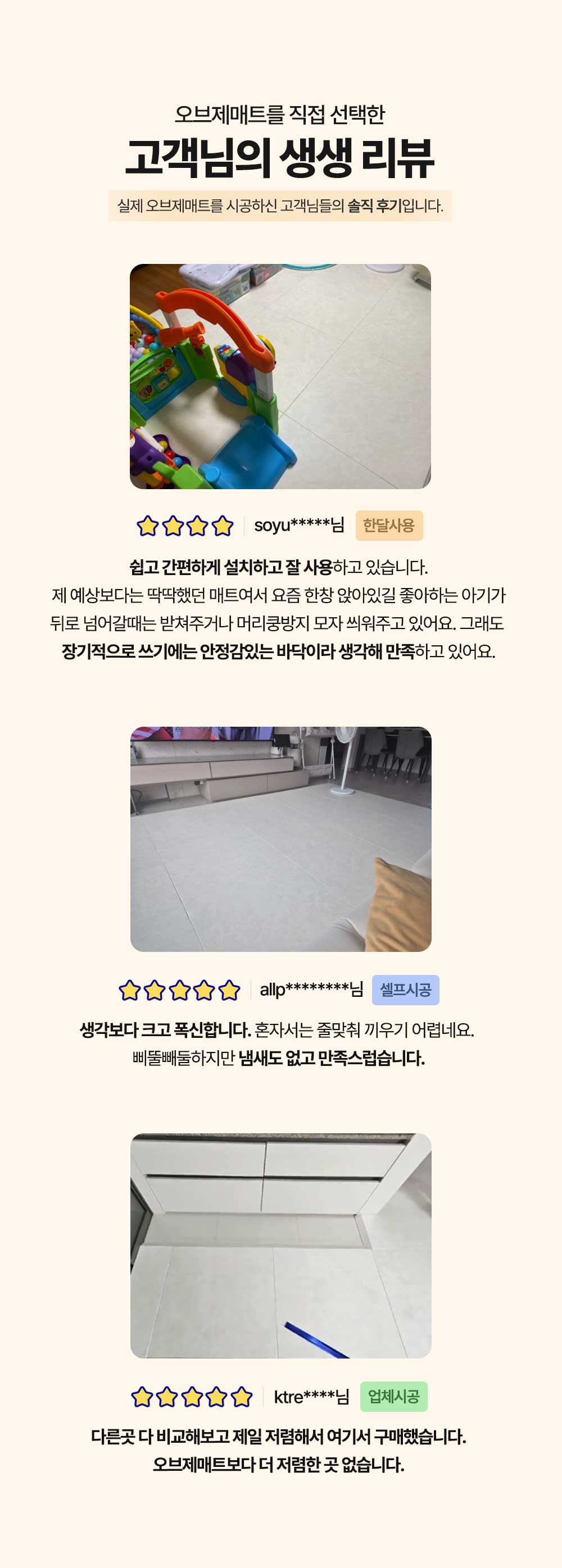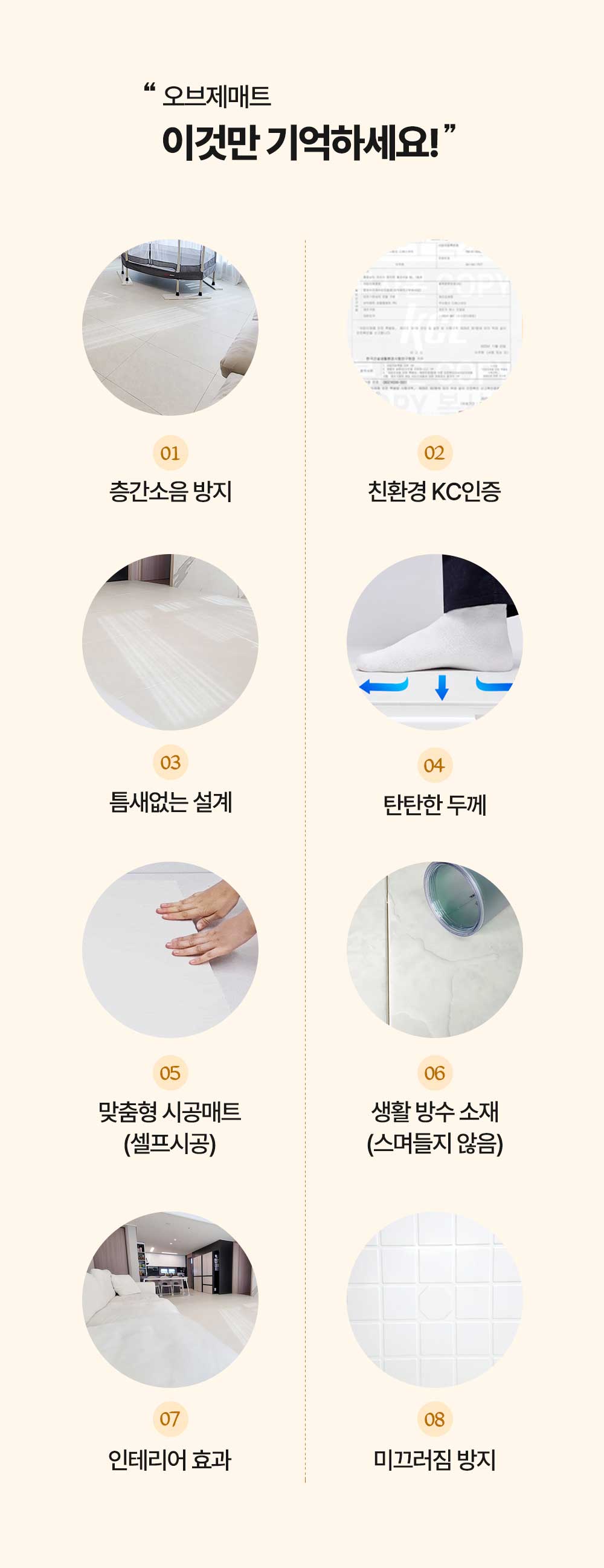 우레탄을 가득 발포하여 흐물거림·발꺼짐 등의 단점을 보완한 업체는 오브제매트가 유일합니다.